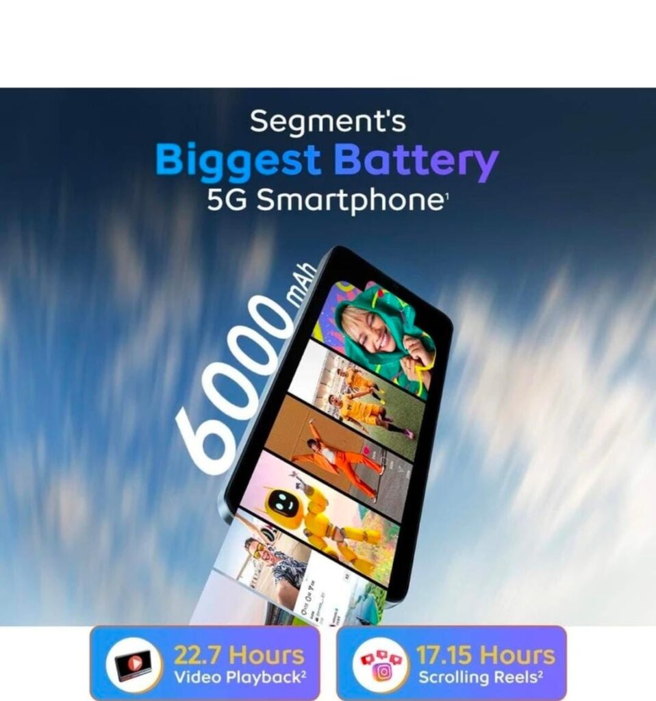 Phone में 6000mAh की Battery दी गई है जो लंबे Time तक Backup प्रदान करती है। इसके साथ 44W Fast Charging Support है जिससे Phone कुछ ही मिनटों में फुल Charge हो जाता है। Gaming या भारी उपयोग के बावजूद यह Battery पूरे दिन आसानी से चलती है।